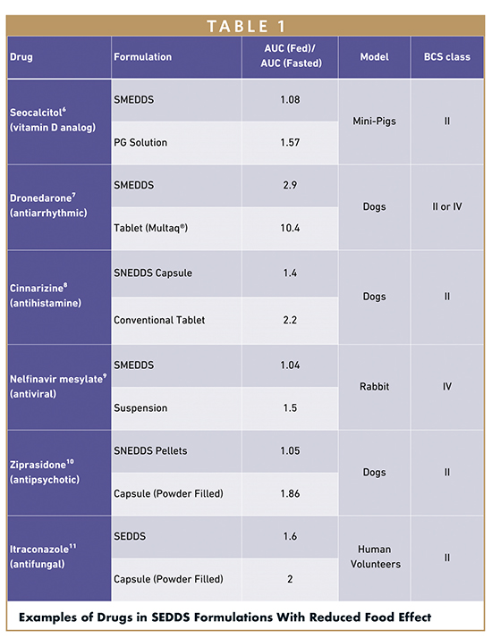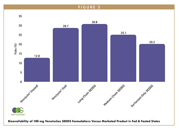 A 2022 study showcased a self-emulsifying drug delivery system (SEDDS) containing a lipophilic salt of the API (venetoclax docusate) to mitigate the food effect.23 The formulations are shown further: