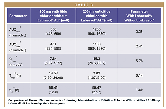 In the study, Labrasol ALF (Caprylocaproyl Polyoxyl-8 glycerides) was evaluated as a permeation enhancer. A simple mixture of 1800 mg of Labrasol ALF with 200 mg of enlicitide chloride enabled a 2- to 3-fold increase in plasma concentration, showcasing the translational relevance of lipid-based approaches for oral delivery of biologics (Table 3).24