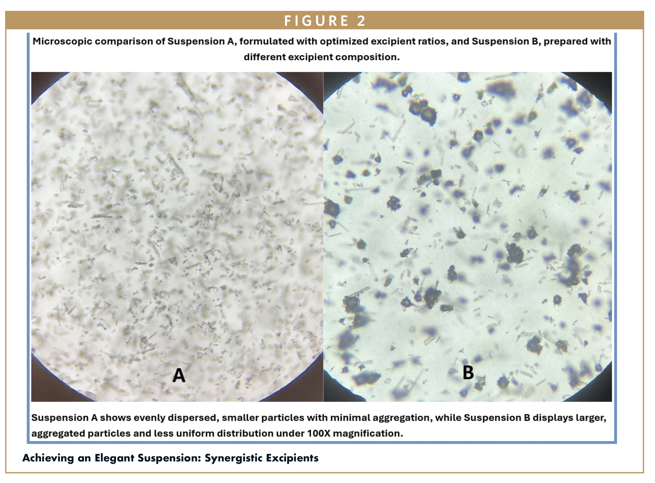 Beyond elevating overall product quality, it creates a visually appealing, dye-free formulation. Visual aspects should not be underestimated — patients often associate clarity, color, and consistency with product quality, and a suspension that looks elegant can inspire greater trust and acceptance.Overall, a comprehensive formulation approach reflects the reality that no single excipient, however novel, can solve every challenge. Success depends on understanding the interactions of multiple components working in sync.