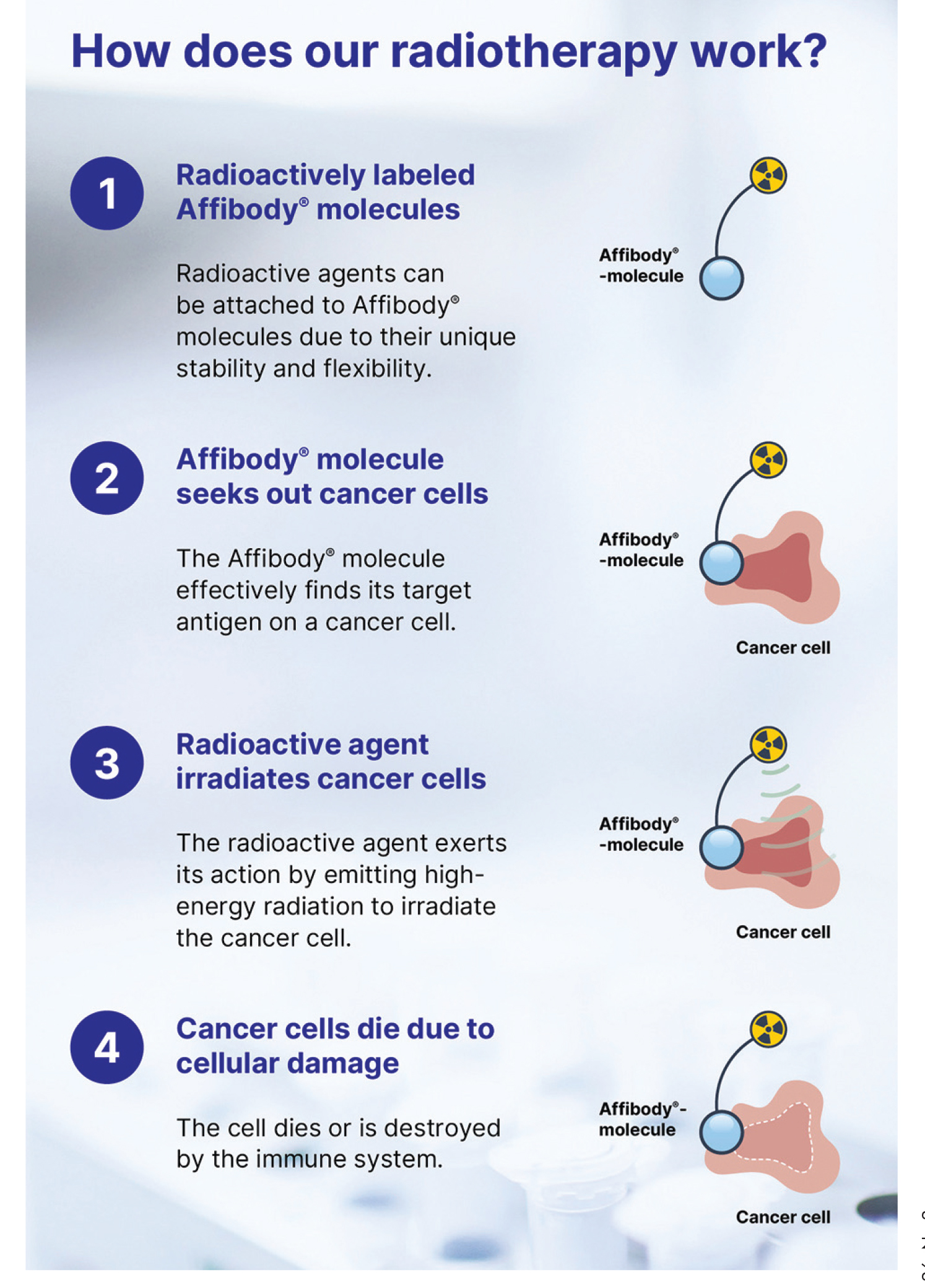 The leading Affibody radioligand has been engineered to target a different epitope compared to traditional HER2 treatments. This enables a multimodal approach that can detect and treat patients with low target-expression in collaboration with diagnostic companion tools, or those that have become resistant to more conventional therapies and makes it possible for combination with approved HER2 products.